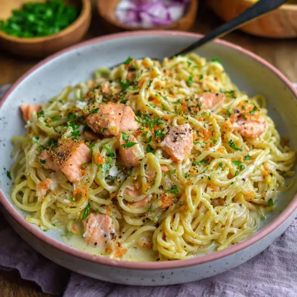 濃厚でまろやかなクリームソースに、香ばしいガーリックバターとサーモンの旨みがたっぷり絡む贅沢な一皿です。レモンの爽やかな酸味がアクセントになり、最後まで飽きずに楽しめます。 📝 材料(2〜3人分) 👩🍳 作り方(ステップバイステップ)