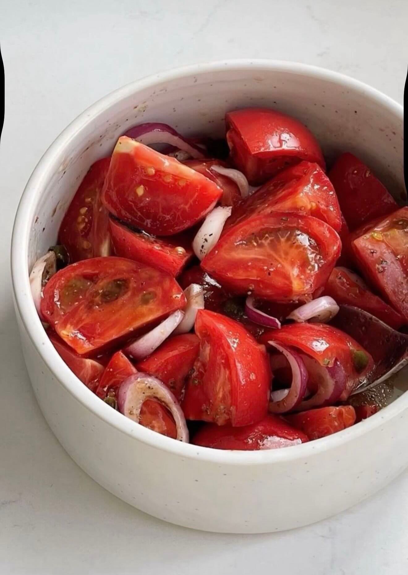 Una ensalada fresca, jugosa y llena de sabor. Perfecta como acompañamiento para carnes, pescados o simplemente con pan crujiente. ¡Sencilla y deliciosa! 📝 Ingredientes (2–3 porciones) 👩‍🍳 Preparación paso a paso